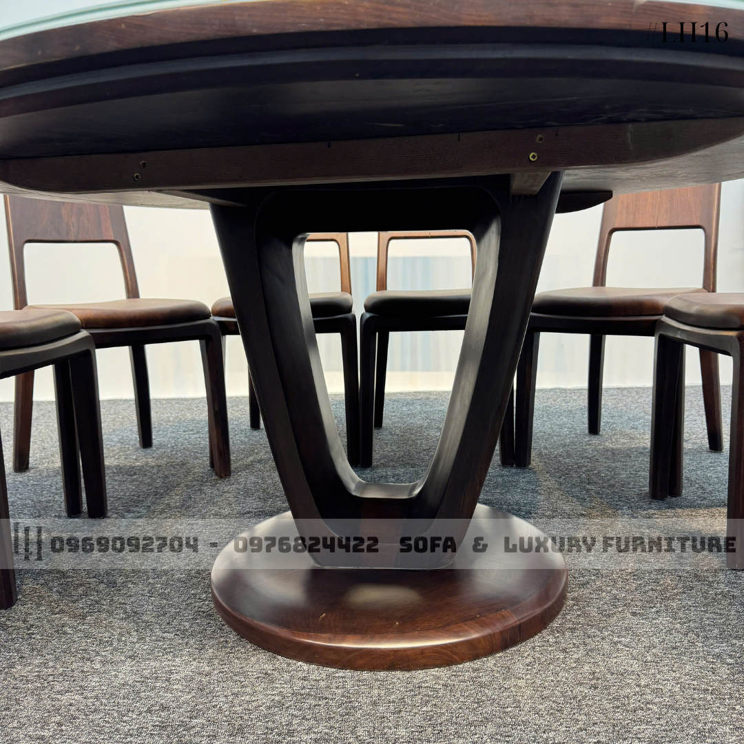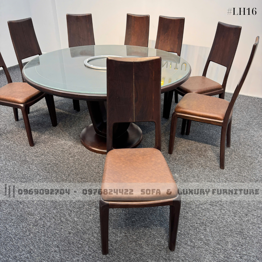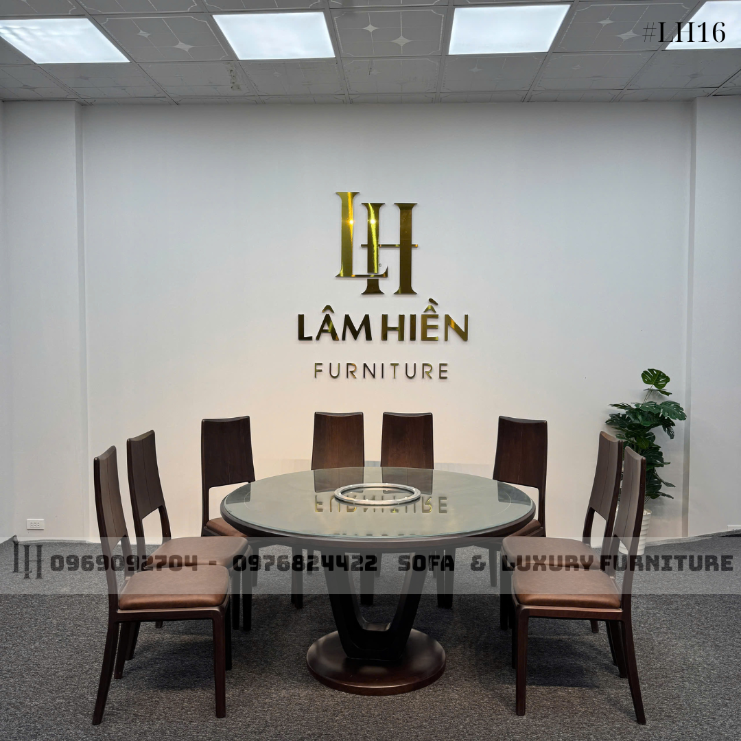 Tận hưởng không gian ẩm thực sang trọng. Bộ bàn ăn tròn gỗ óc chó mã LH16 là đỉnh cao của thiết kế. Sản phẩm đến từ Nội Thất Lâm Hiền. Nó là sự kết hợp hoàn hảo giữa vân gỗ óc chó tự nhiên và sự tiện nghi. Với mâm xoay 360 độ và 6 ghế nệm da êm ái, LH16 biến mọi bữa ăn thành một trải nghiệm đẳng cấp.