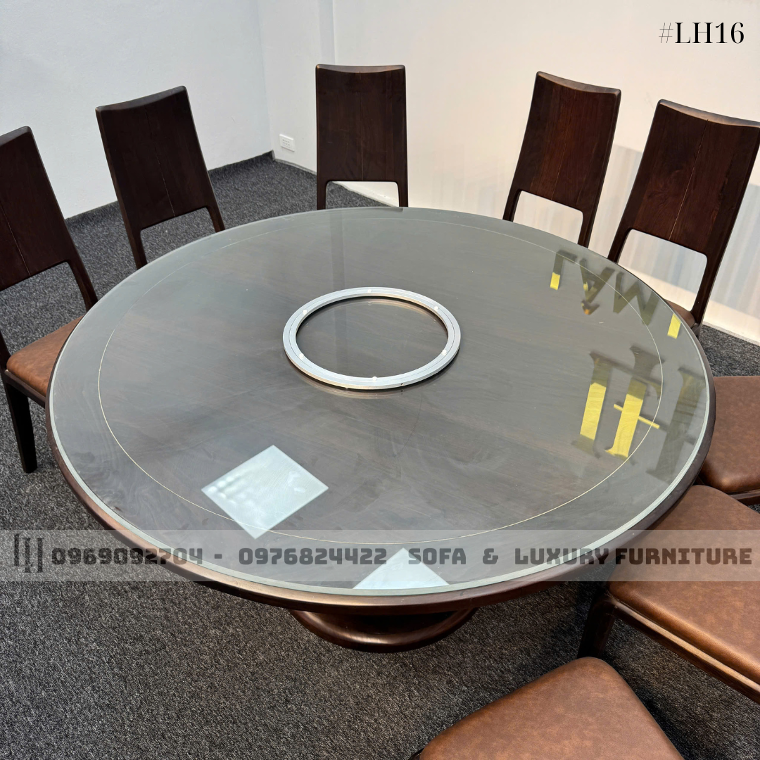 Bộ Bàn Ăn Tròn Gỗ Óc Chó 6 Ghế Mâm Xoay LH16