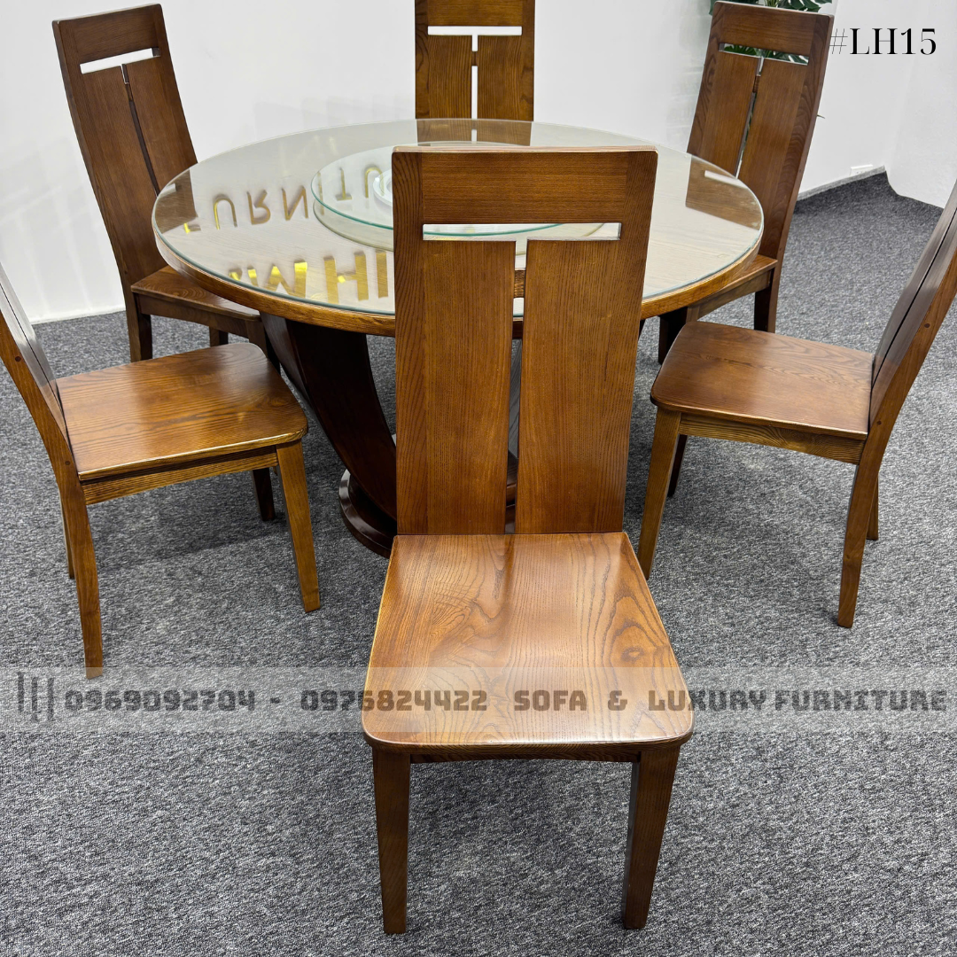 Bộ bàn ăn tròn 6 ghế có mâm xoay LH15